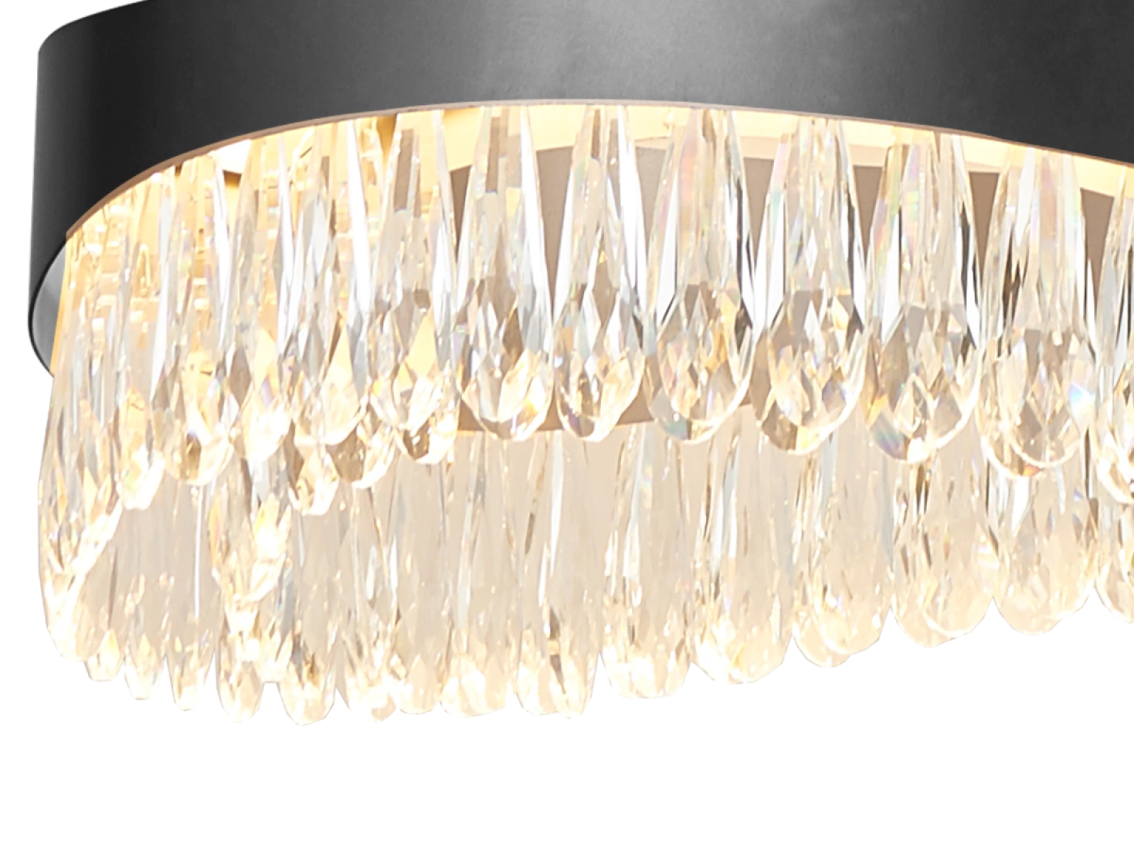 The luminaire is constructed from high quality stainless steel metal with a premium surface finish and complemented by precision cut crystals that create striking lighting effects. The processing technology guarantees long-lasting durability and preservation of appearance.