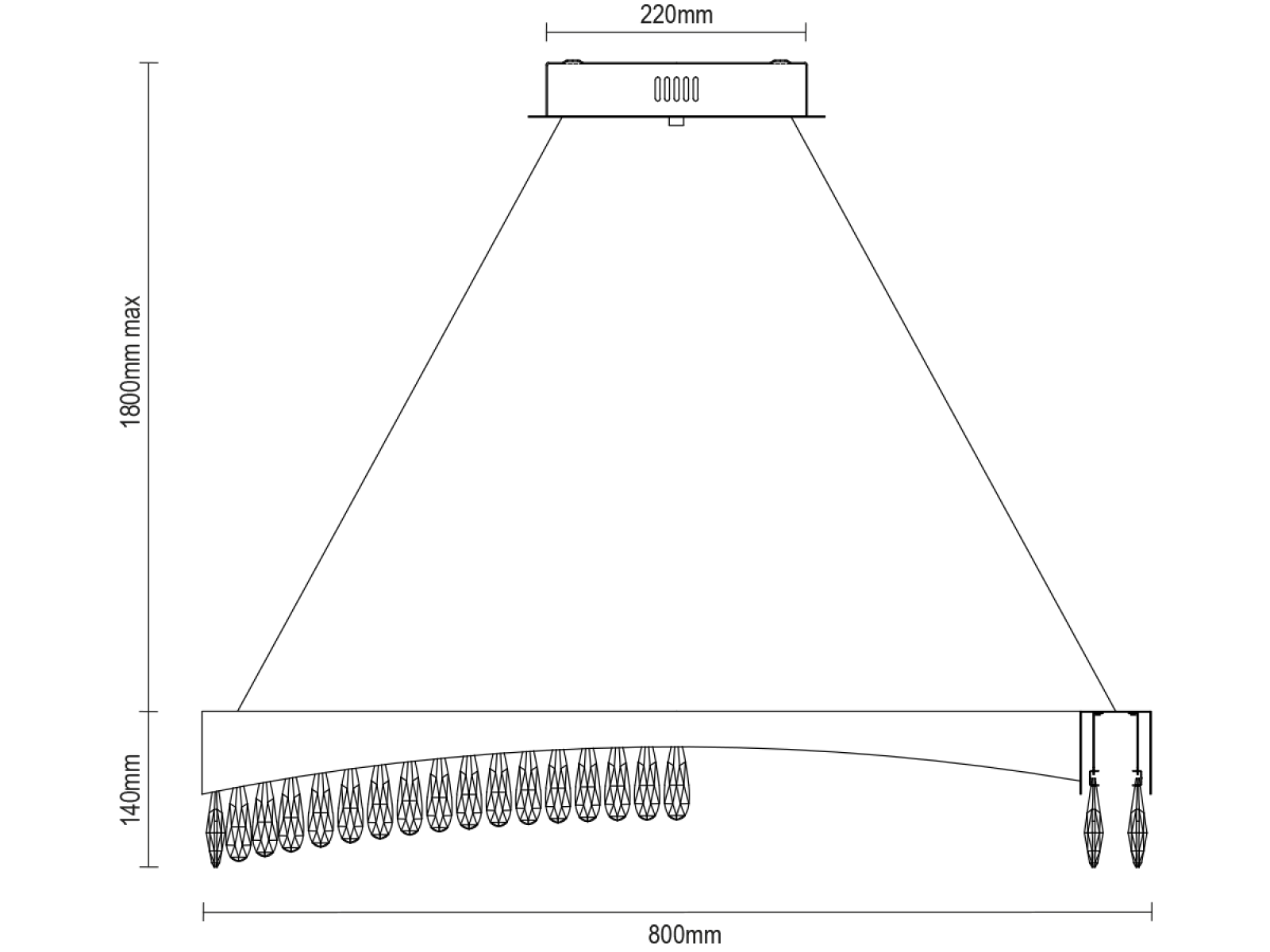 Svietidlo je vyrobené z vysokokvalitného nerezového kovu s prémiovou povrchovou úpravou, doplnené o precízne brúsené kryštály, ktoré zvýrazňujú odraz a lom svetla. Použitá technológia spracovania zabezpečuje dlhodobú stabilitu materiálu a zachovanie jeho estetického vzhľadu.