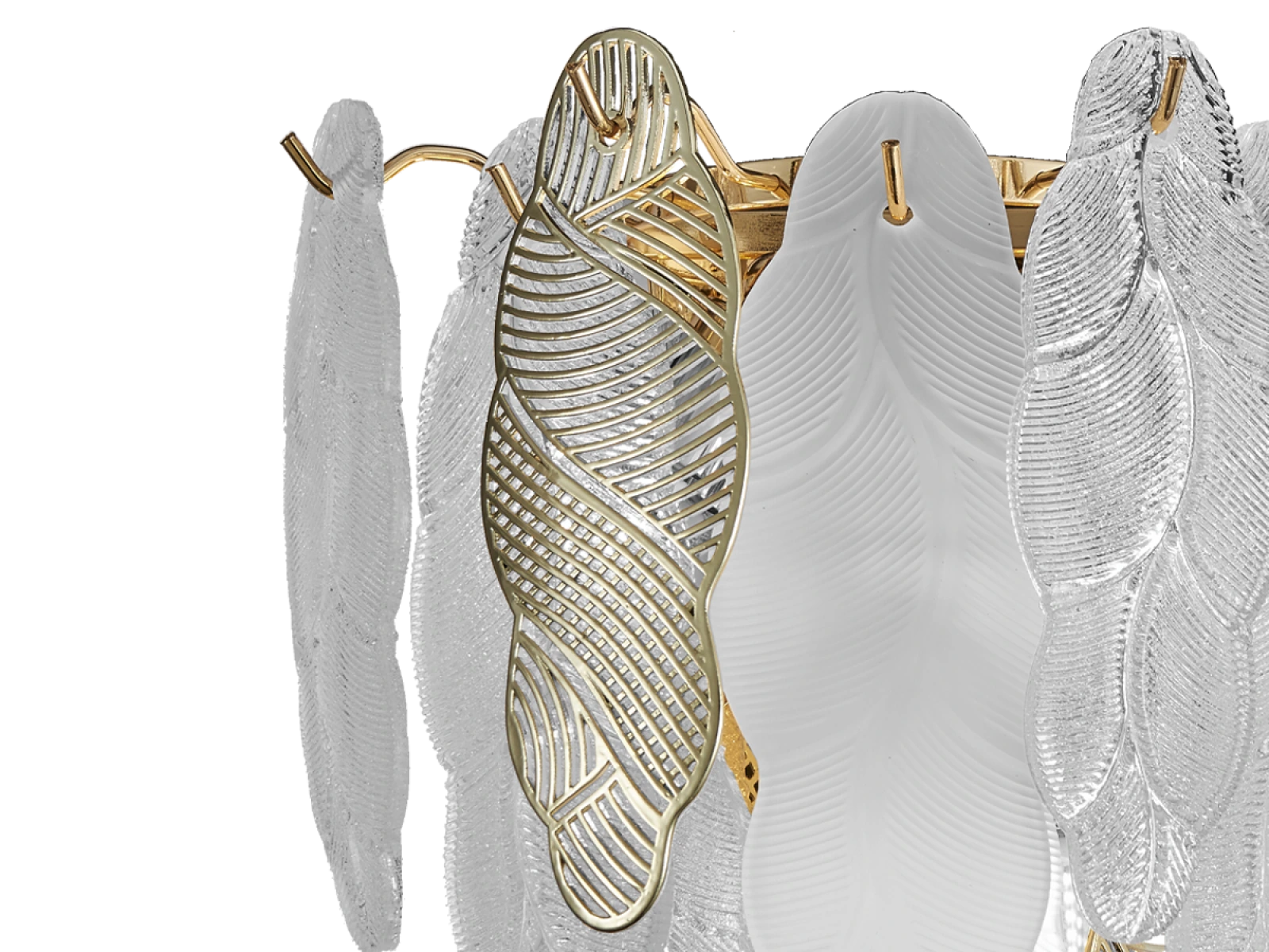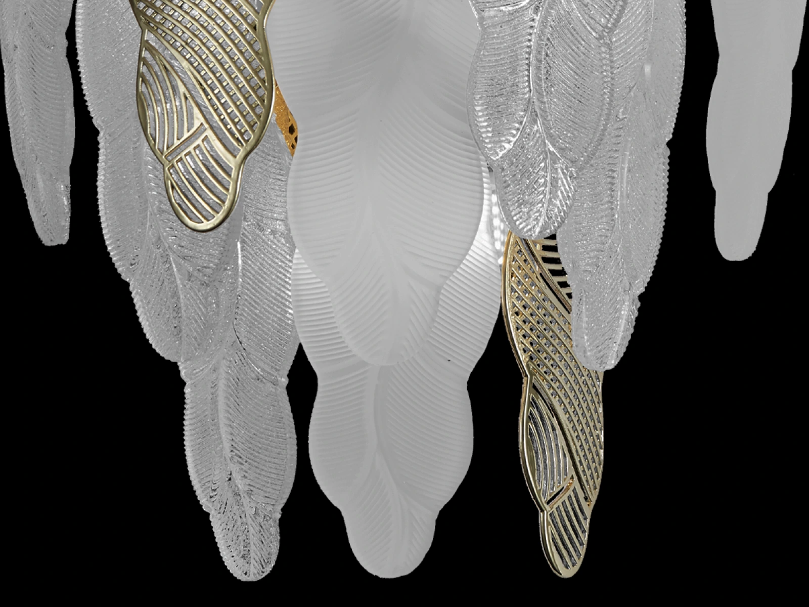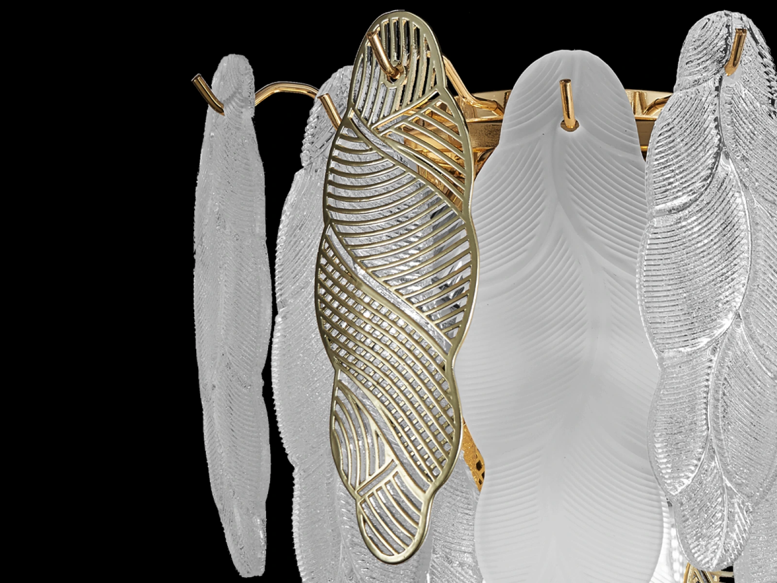 Jemná štruktúra sklenených prvkov v kombinácii s dekoratívnymi kovovými detailmi podčiarkuje luxusný a sofistikovaný charakter tejto kolekcie.