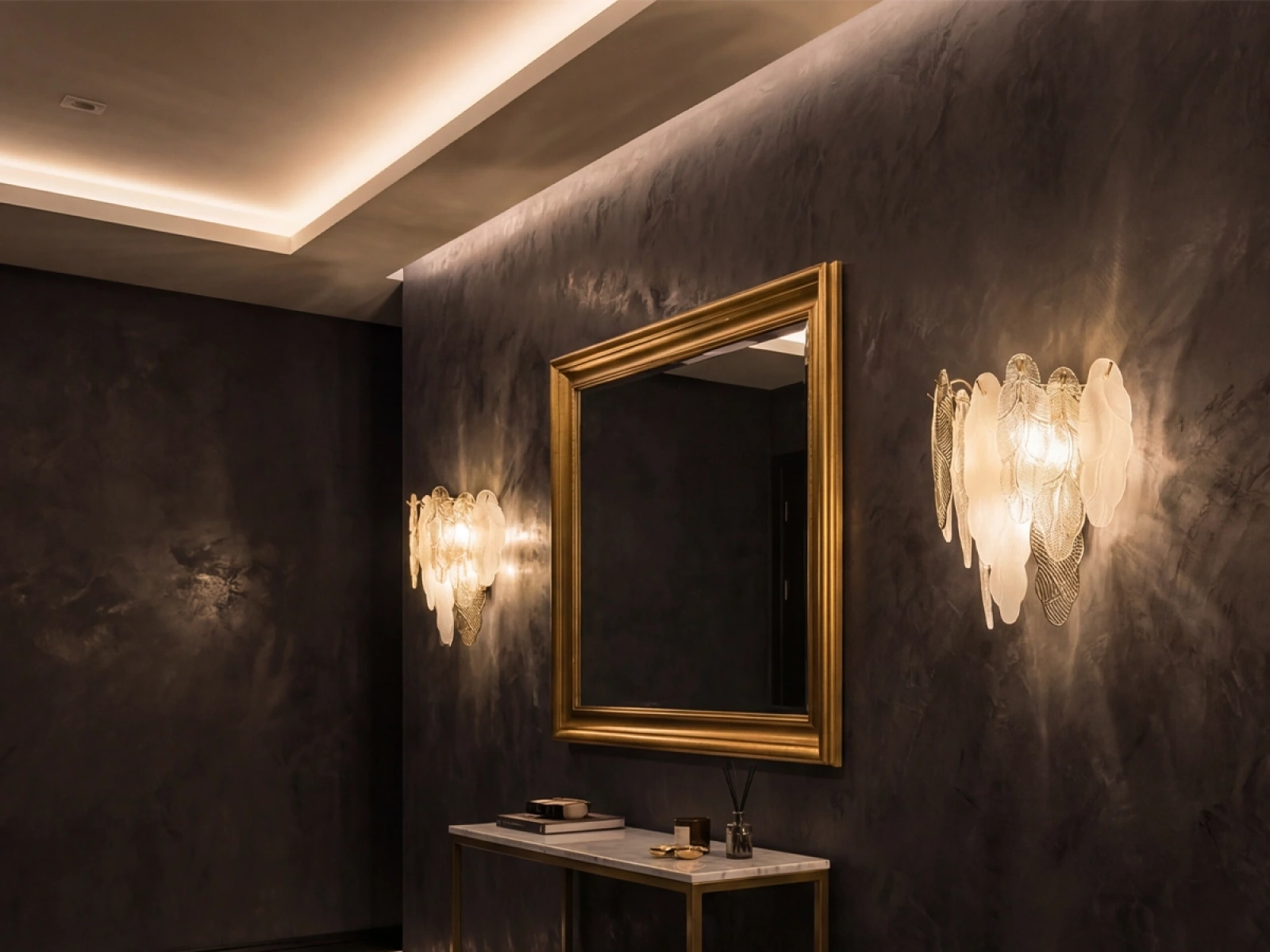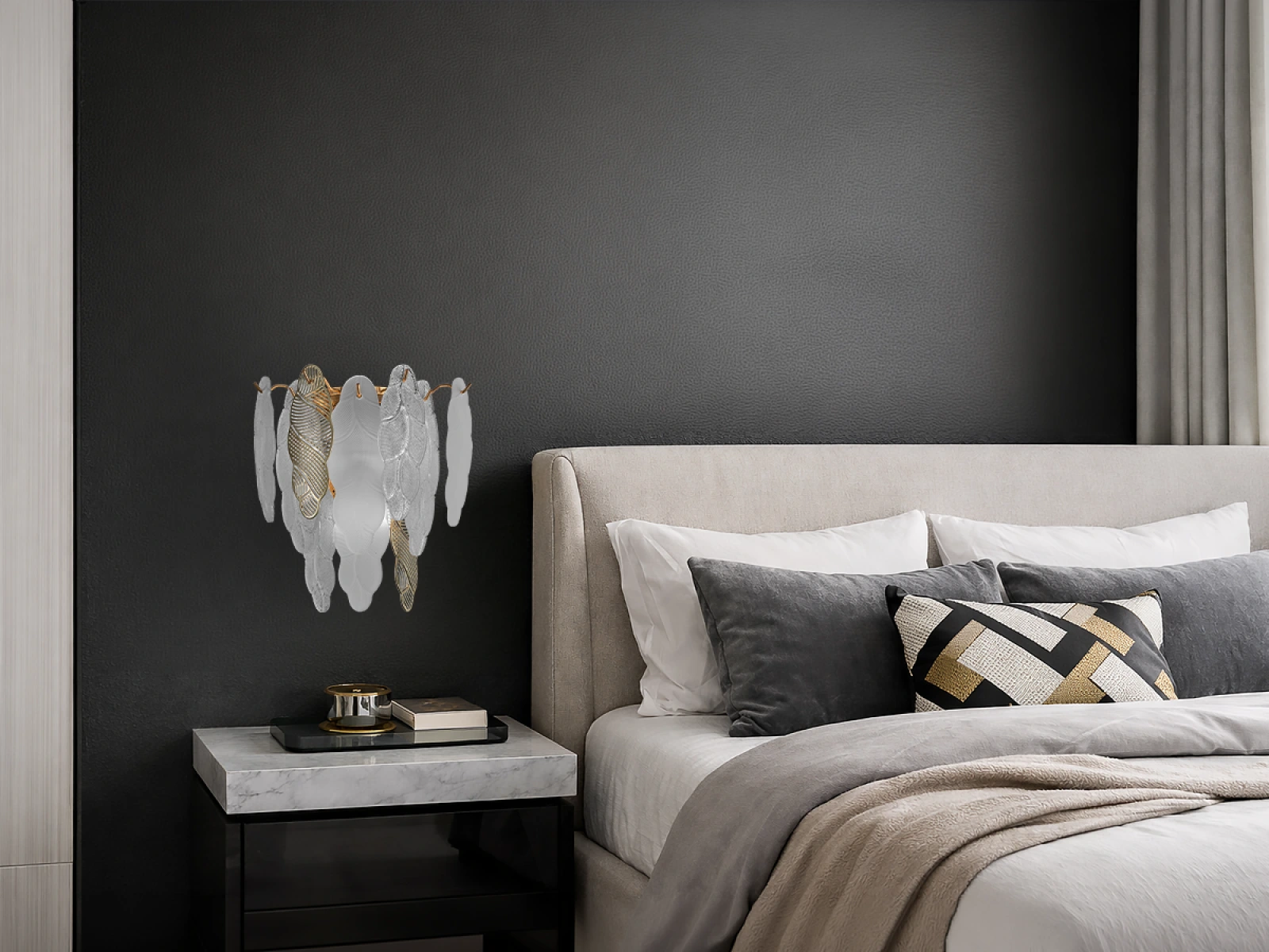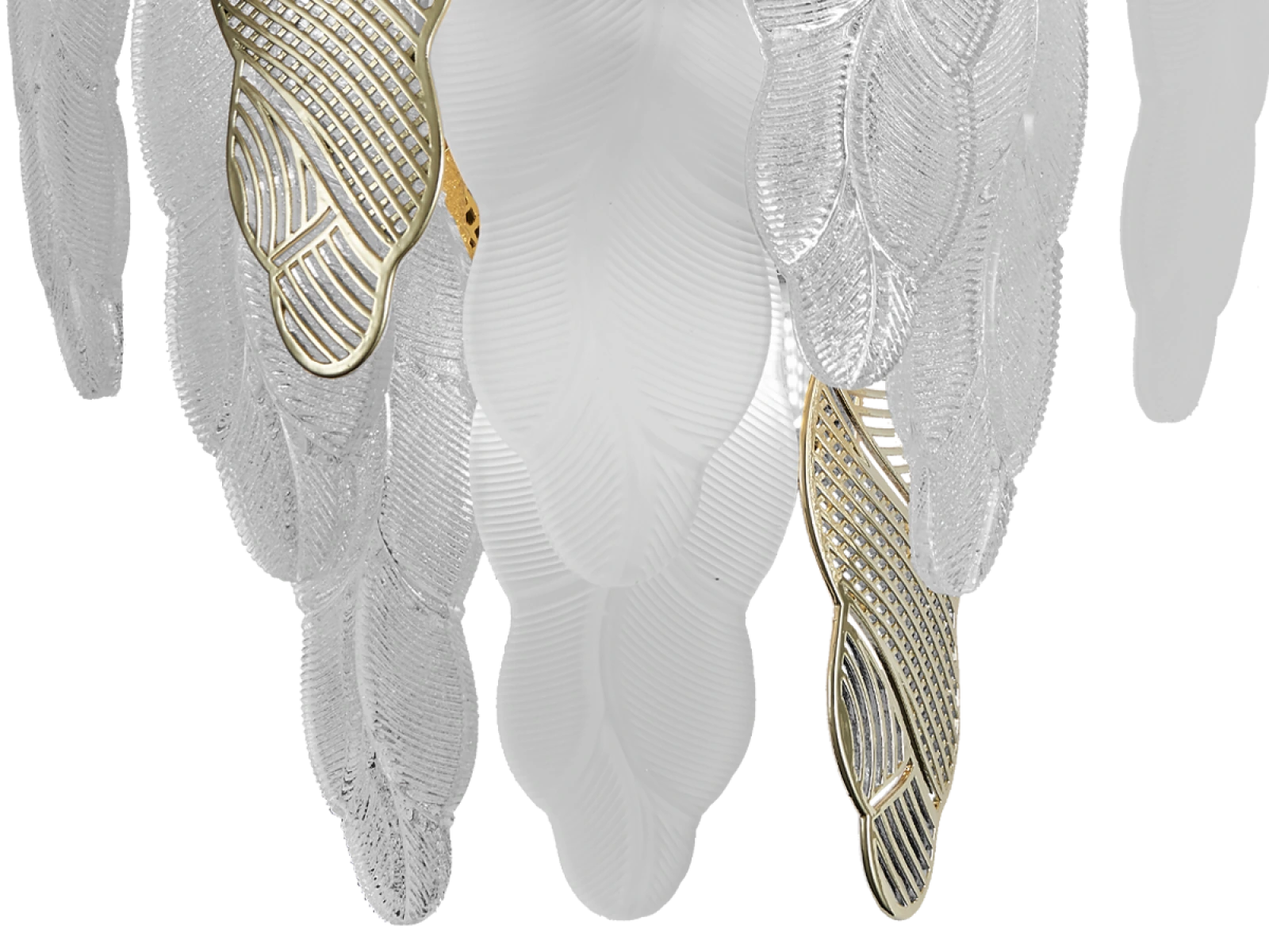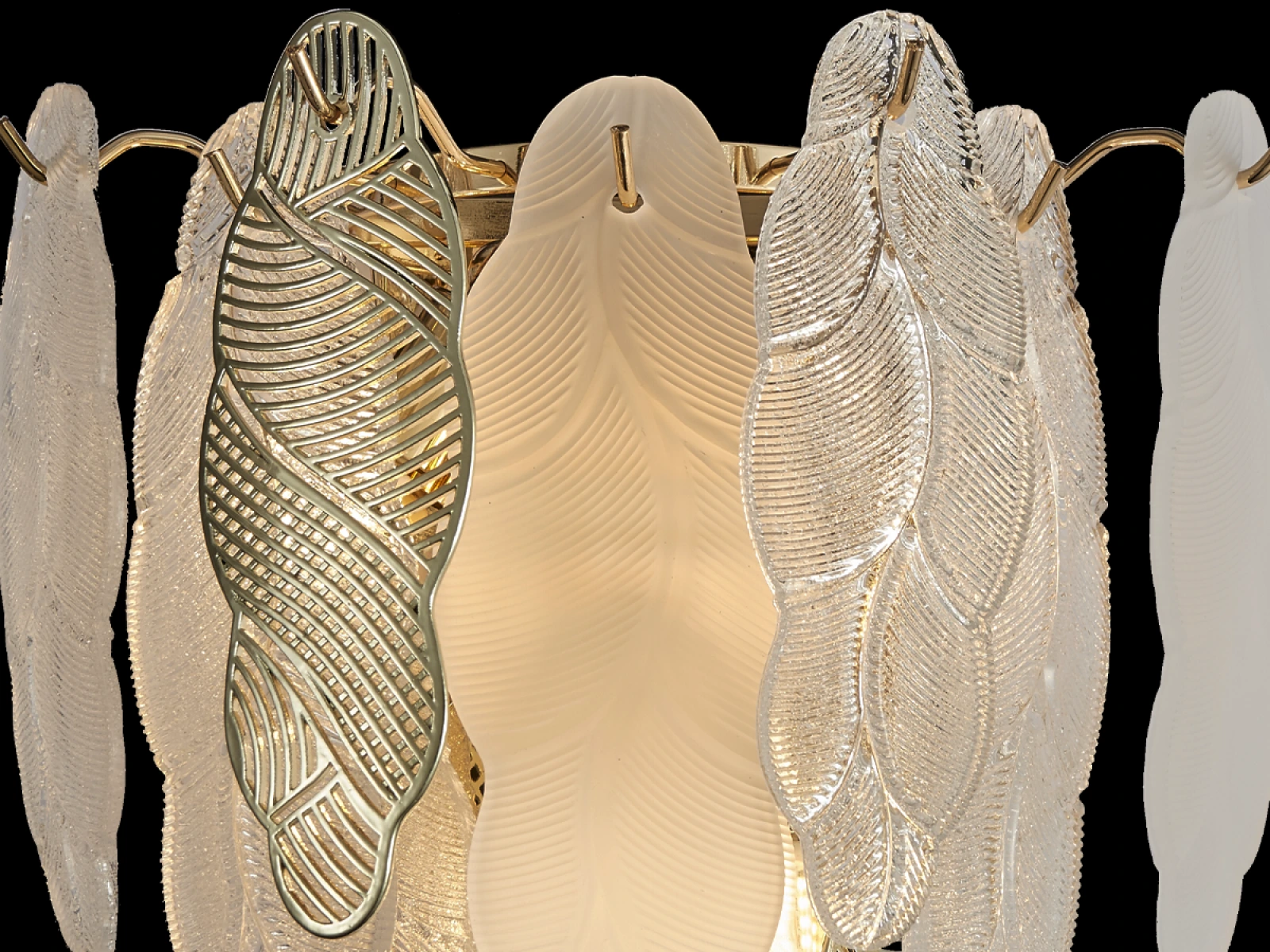 Jemná štruktúra sklenených prvkov v kombinácii s dekoratívnymi kovovými detailmi podčiarkuje luxusný a sofistikovaný charakter tejto kolekcie.