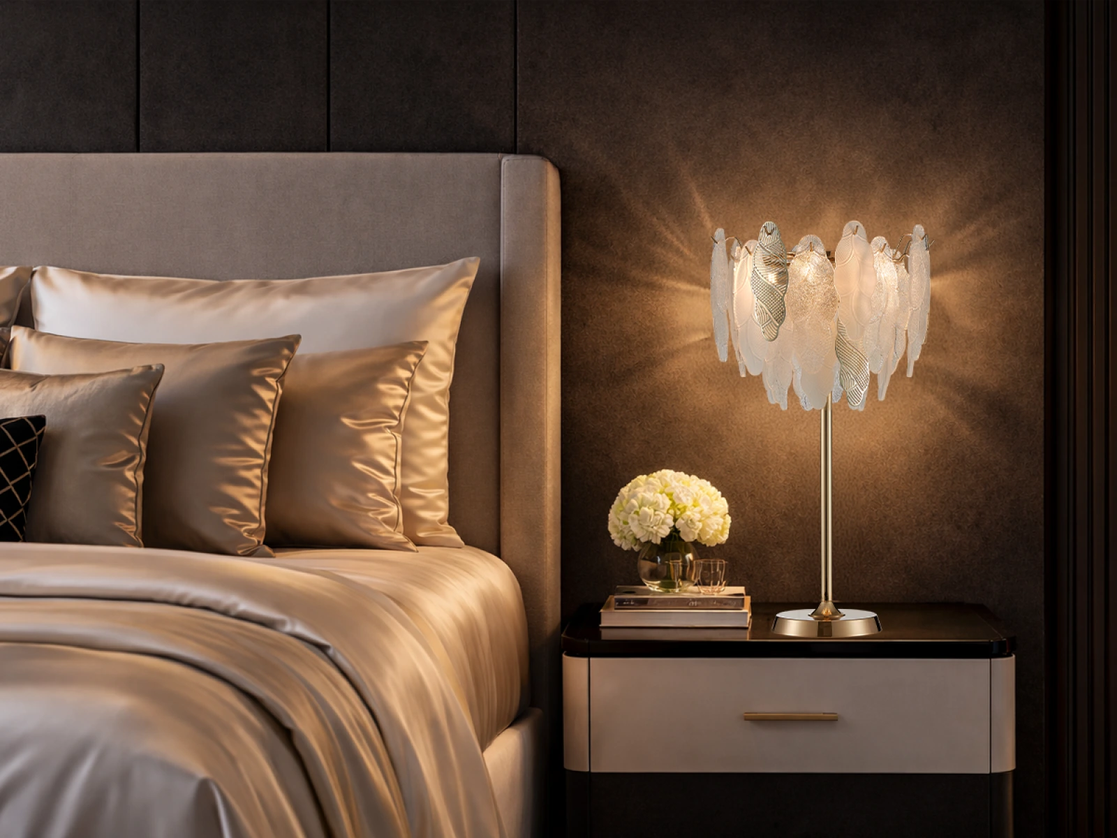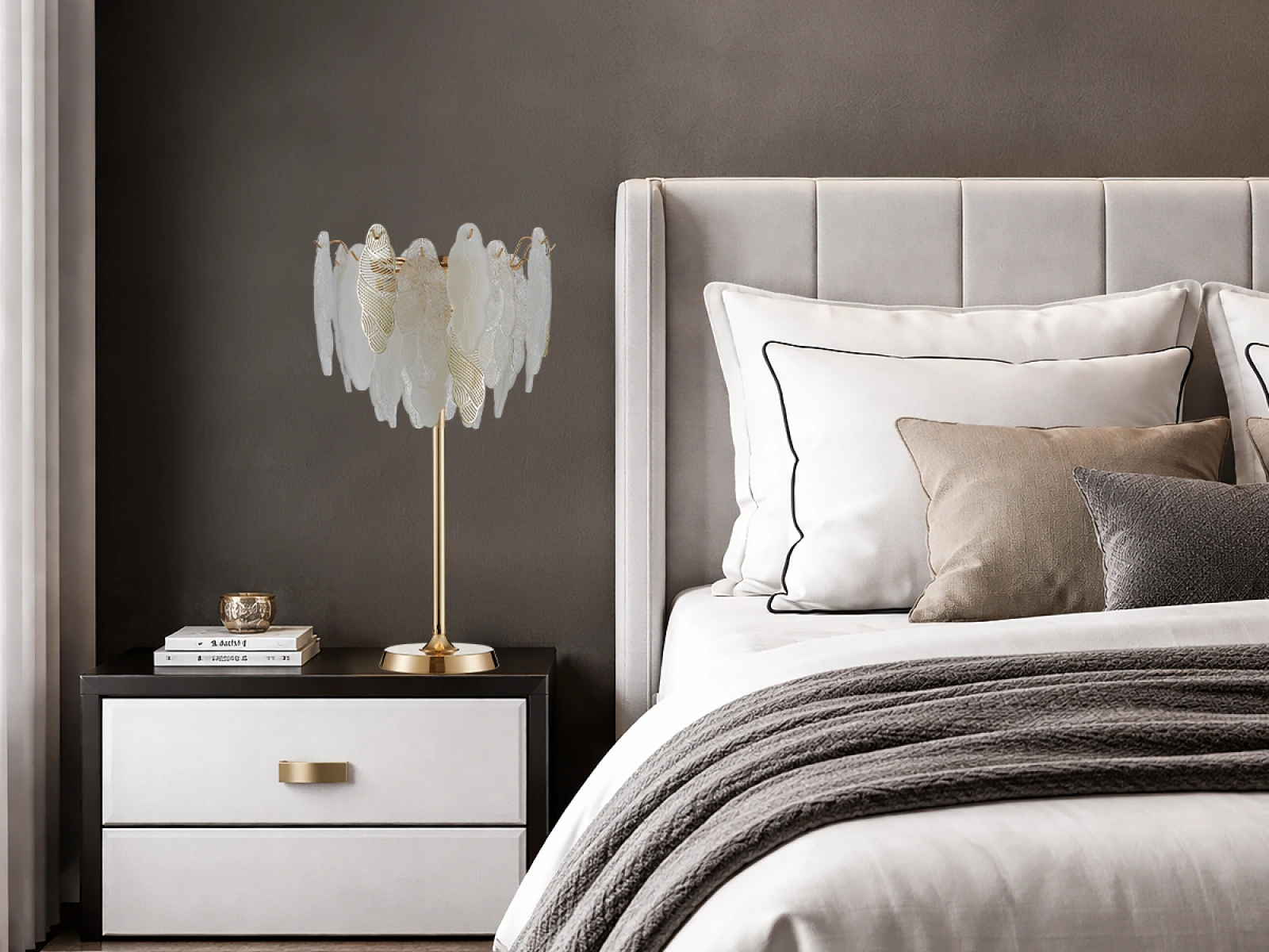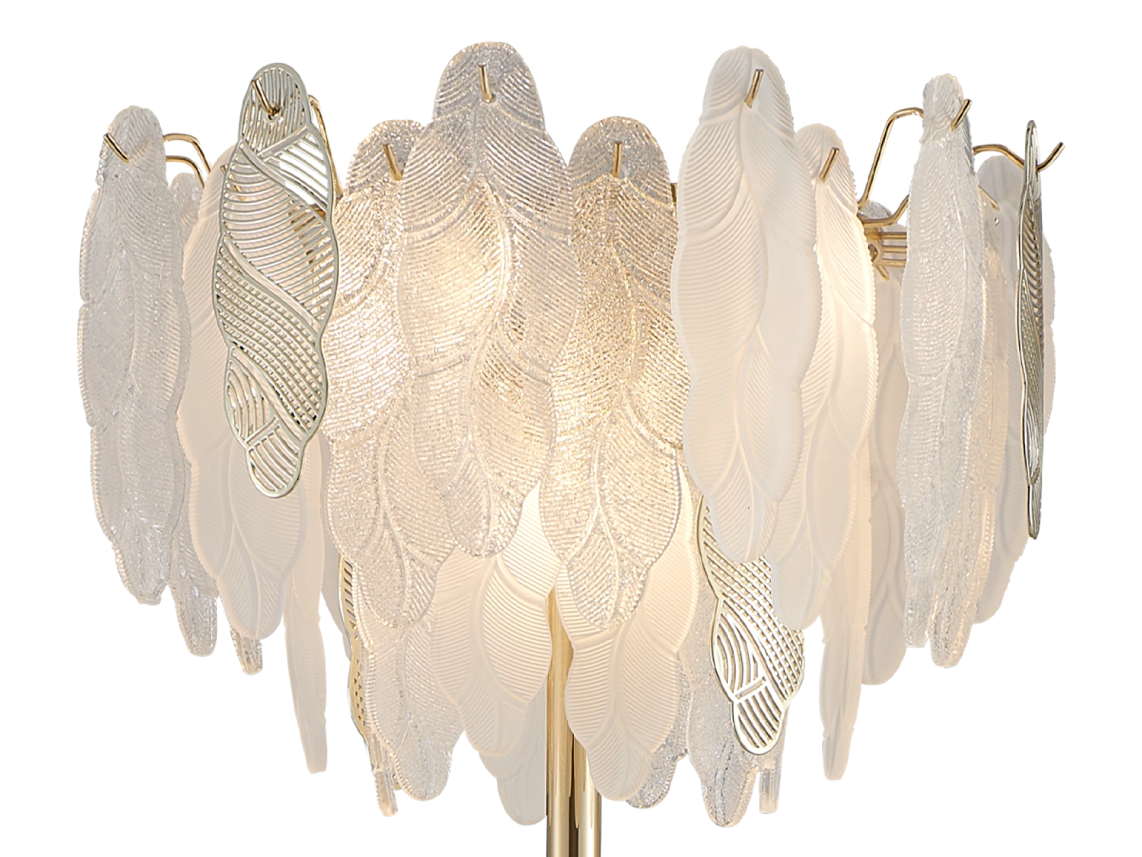 Jemná štruktúra sklenených prvkov v kombinácii s dekoratívnymi kovovými detailmi podčiarkuje luxusný a sofistikovaný charakter tejto kolekcie.