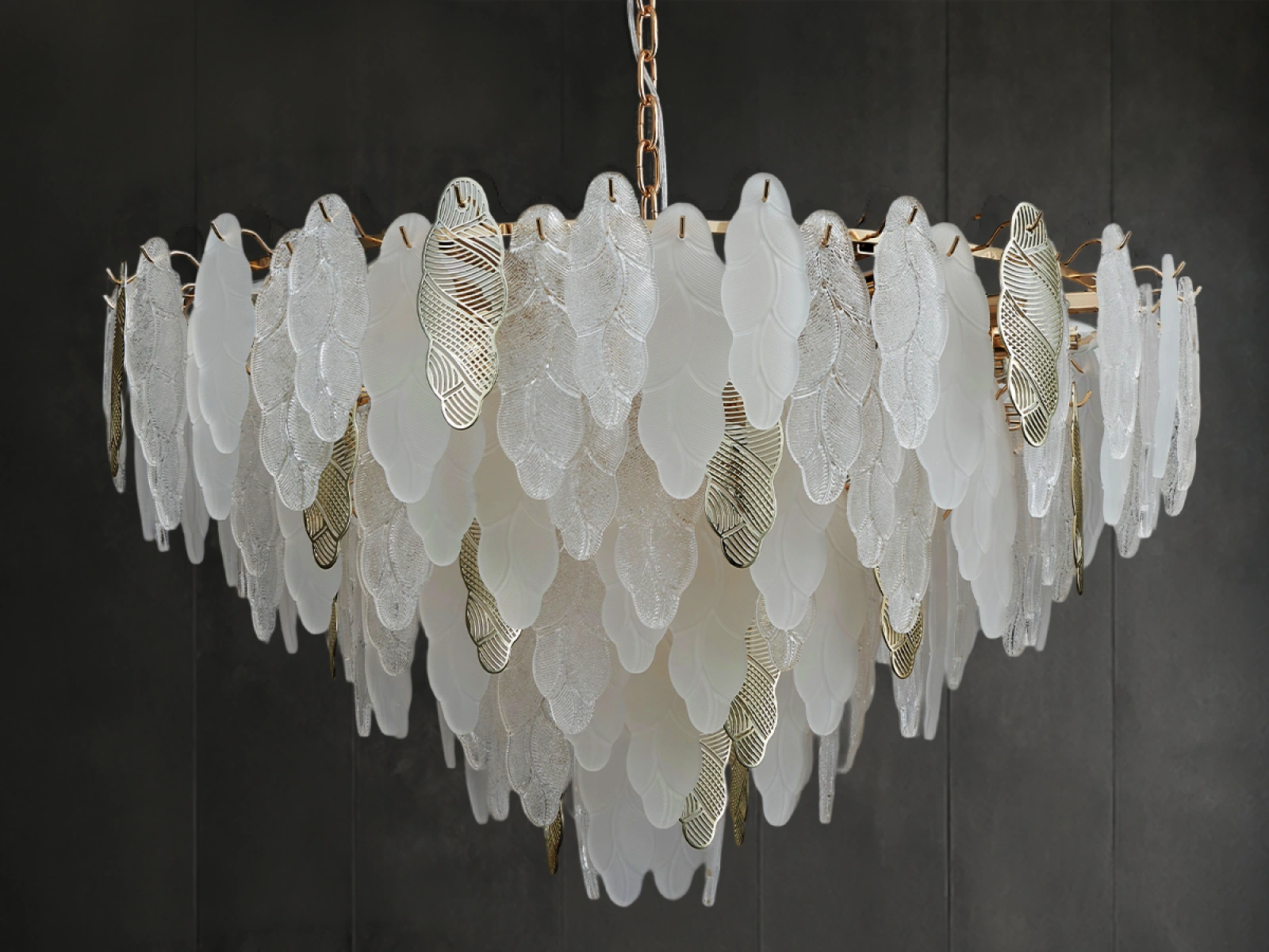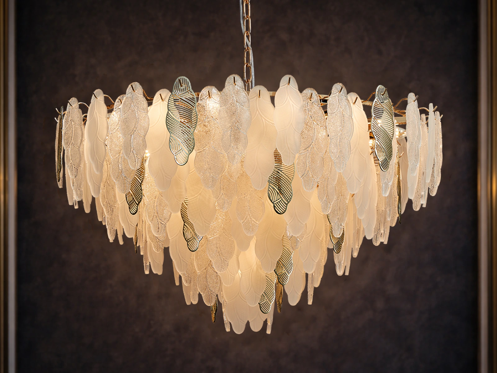 Jemná štruktúra sklenených prvkov v kombinácii s dekoratívnymi kovovými detailmi podčiarkuje luxusný a sofistikovaný charakter tejto kolekcie.