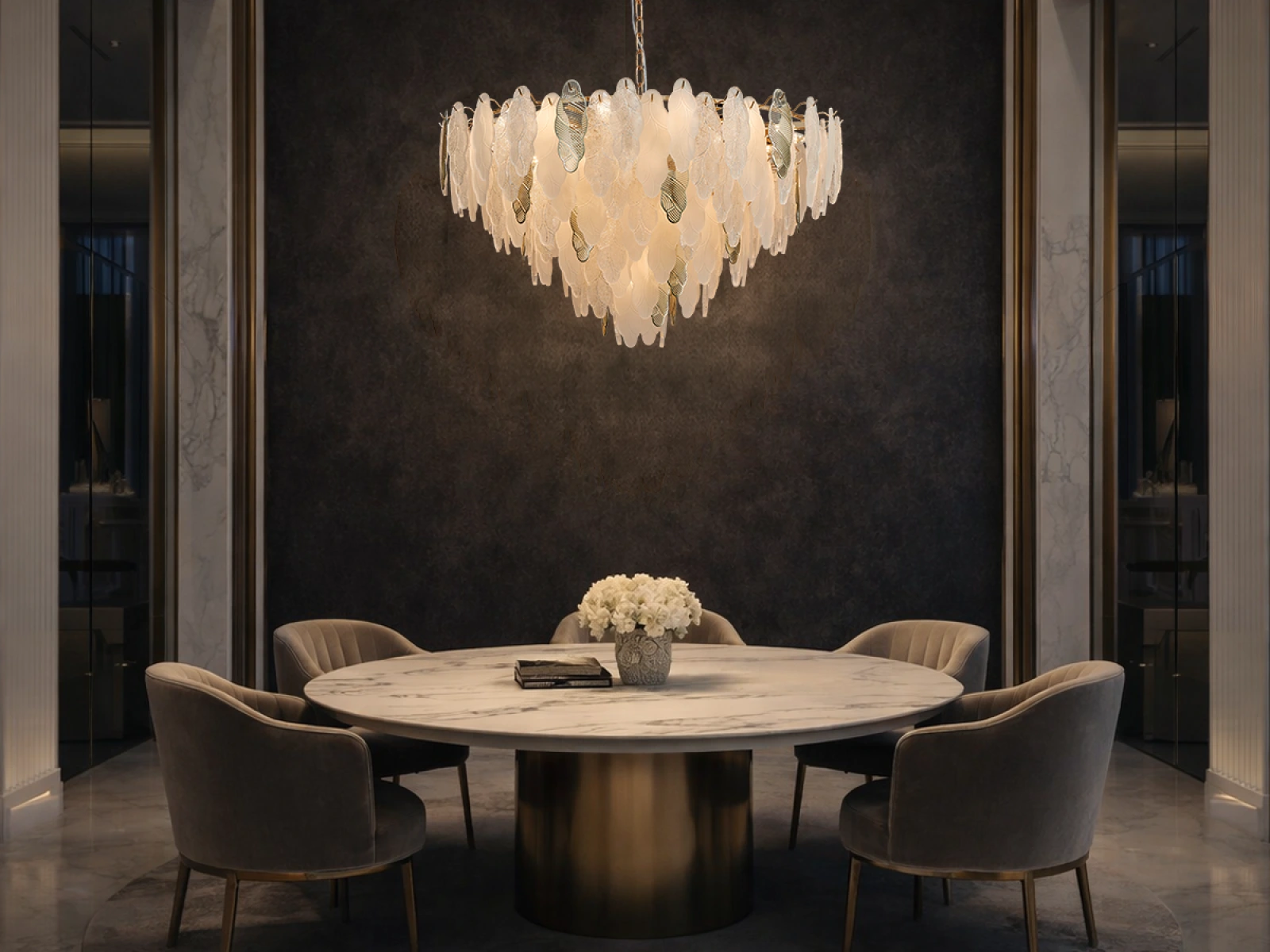 Závesné svietidlo série CHOREO značky VIZARDI predstavuje elegantné dizajnové osvetlenie s výrazným dekoratívnym charakterom. Precízne usporiadanie jednotlivých prvkov vytvára harmonickú kompozíciu s jedinečným svetelným efektom a dodáva priestoru výrazný vizuálny akcent. Svietidlo je vhodné do obývačky, jedálne, spálne aj reprezentatívnych interiérov.