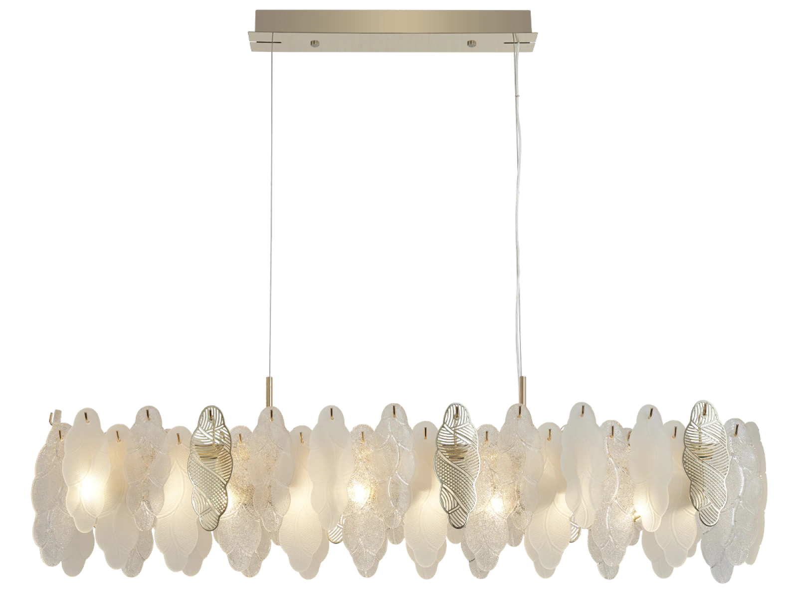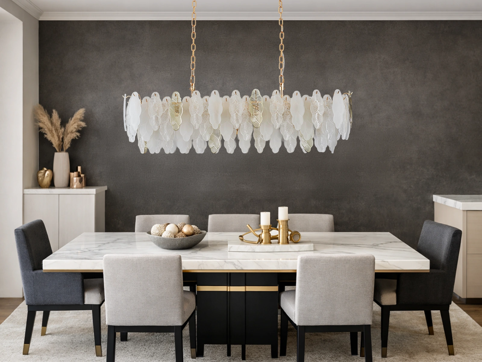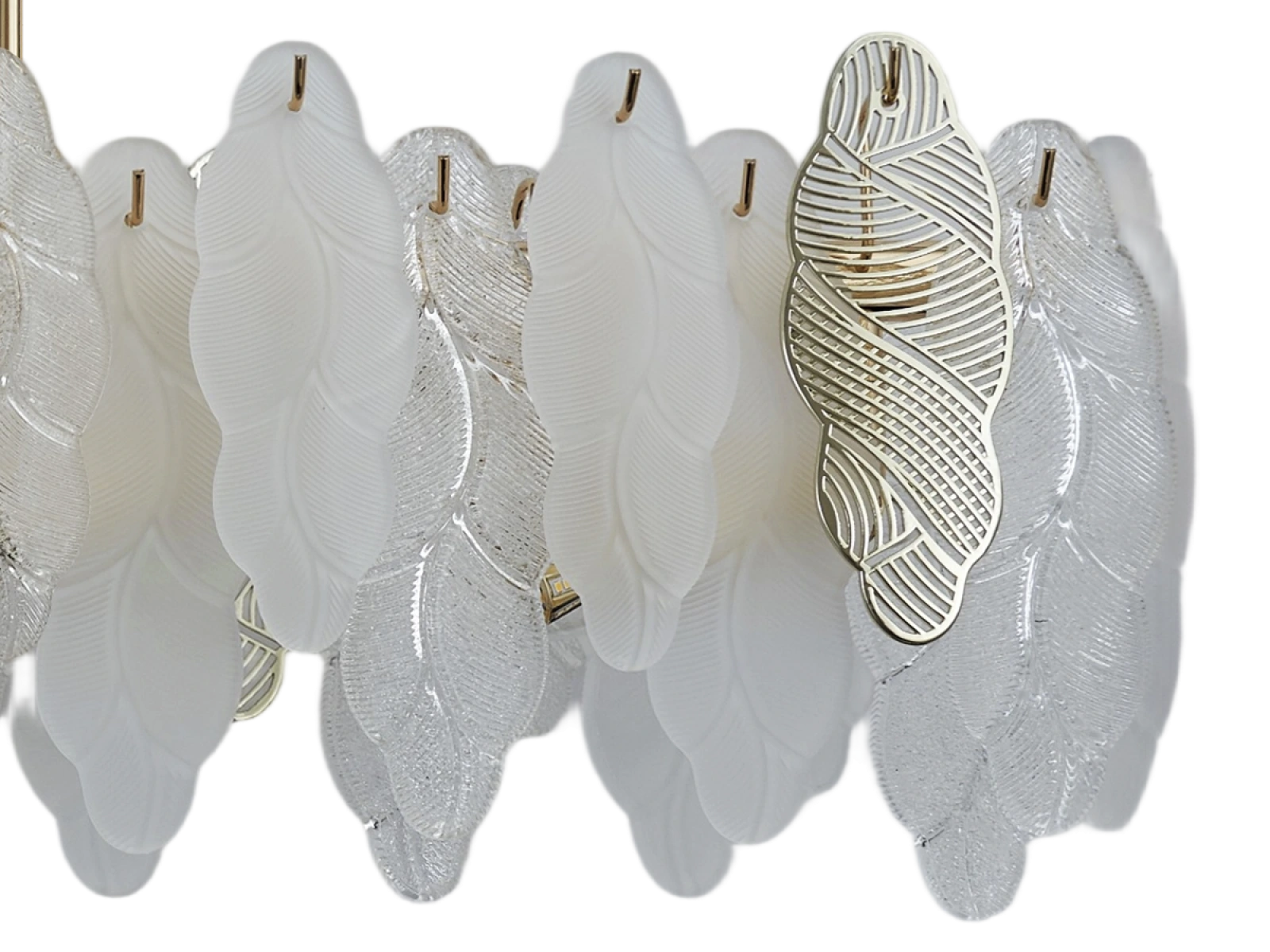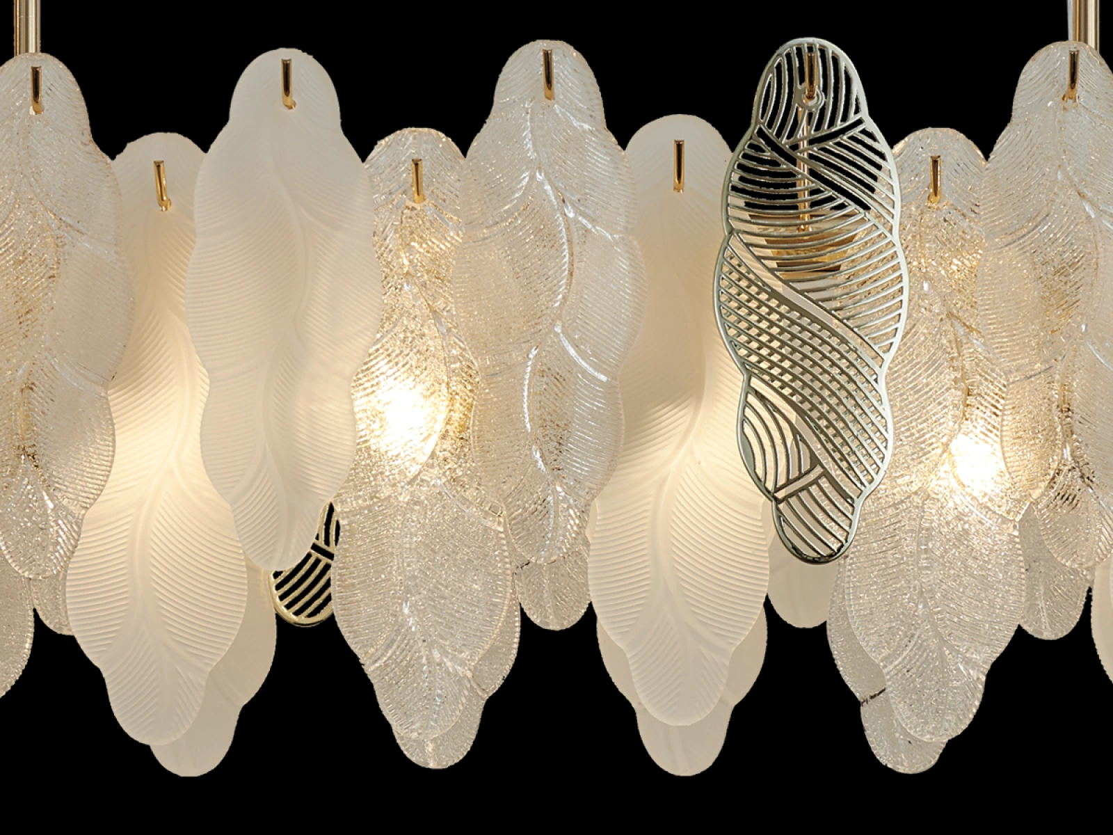 Jemná štruktúra sklenených prvkov v kombinácii s dekoratívnymi kovovými detailmi podčiarkuje luxusný a sofistikovaný charakter tejto kolekcie.