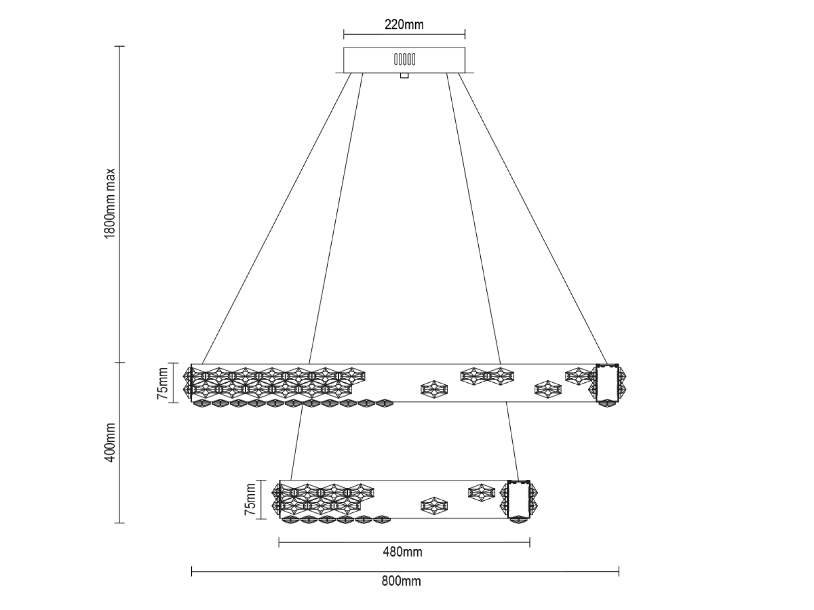 CLARIS závesný krištáľový luster 800+480 - V30006