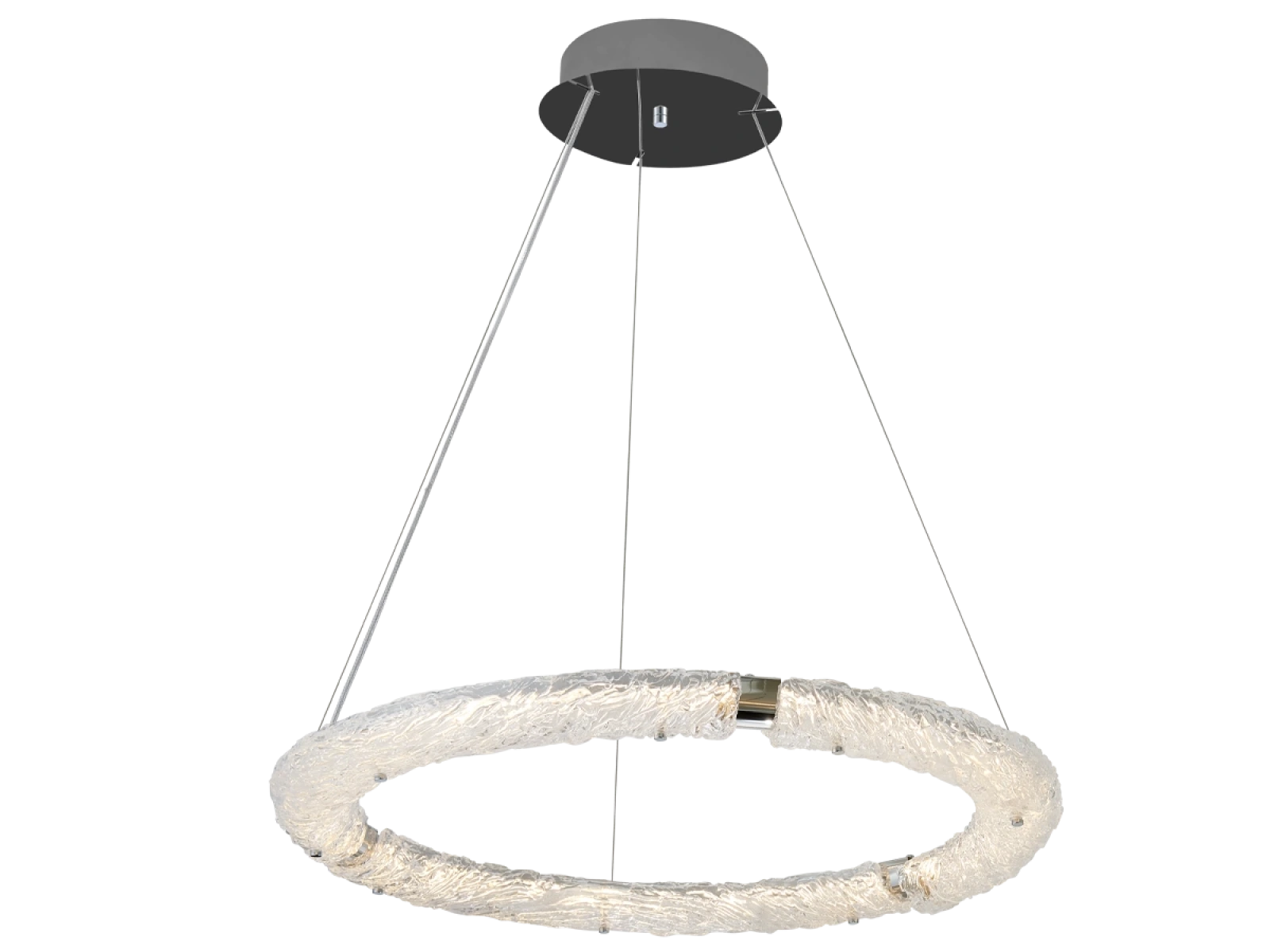 The luminaire is made of high quality stainless steel metal with a chrome finish that ensures long lasting durability, stability and a luxurious appearance. The glass elements with a textured bark-inspired surface ensure an even and pleasant light diffusion.