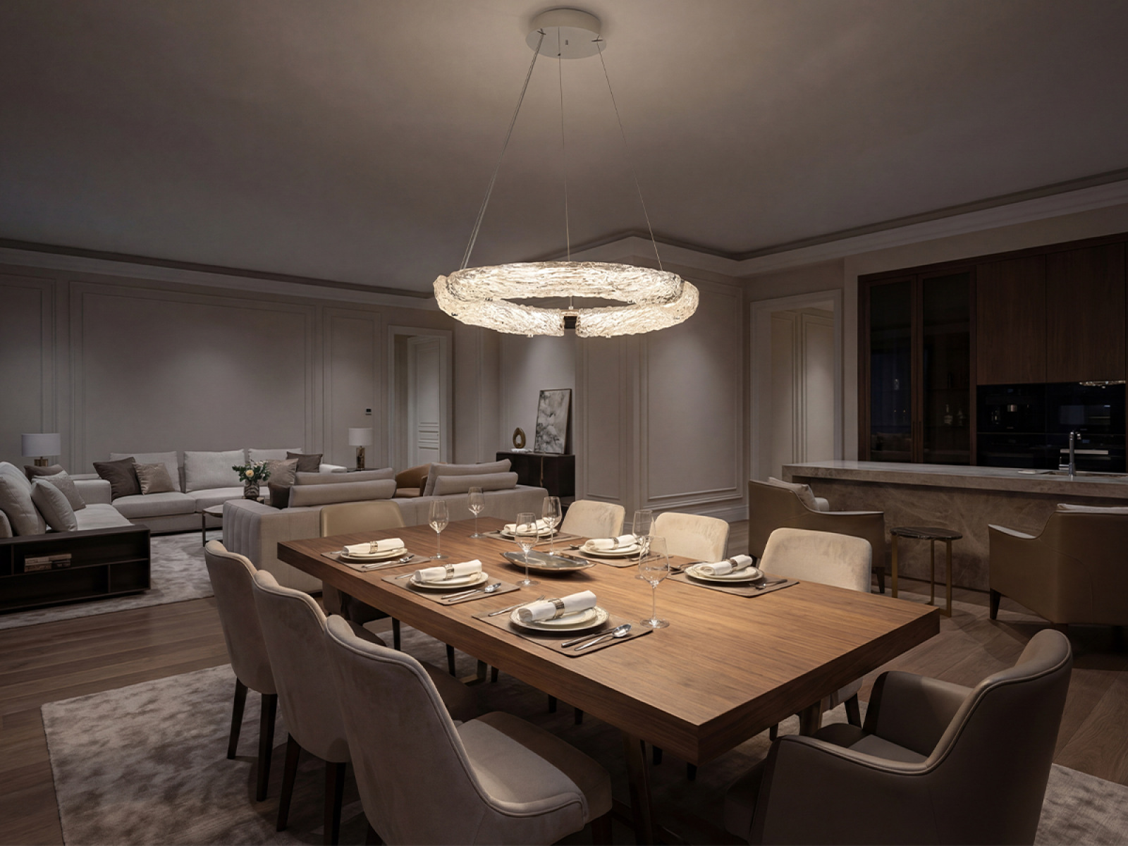 VIZARDI 's CORTEZA series LED pendant lamp impresses with its modern design, distinctive structure and sophisticated lighting effects that add a unique character to the interior. Elegant lines and timeless craftsmanship make this series the ideal choice for lighting the living room, dining room, study, bedroom and representative commercial spaces.