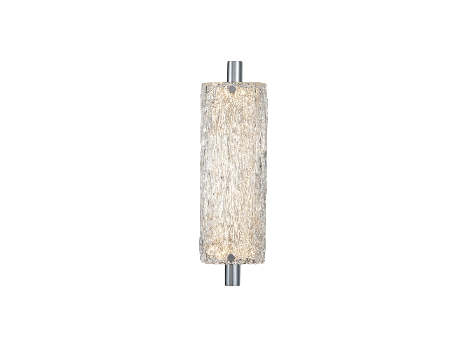 The luminaire is made of high quality stainless steel metal with a chrome finish that ensures long lasting durability, stability and a luxurious appearance. The glass elements with a textured bark-inspired surface ensure an even and pleasant light diffusion.