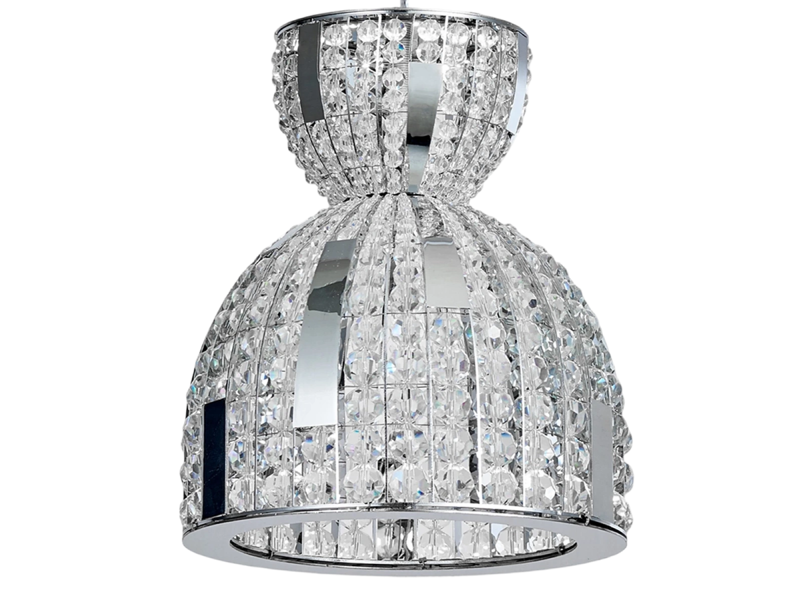 The combination of the finely shaped shade and chrome finish appears modern and timeless. The high-quality stainless steel construction together with cut crystals ensures long lifespan and stability of the fixture.