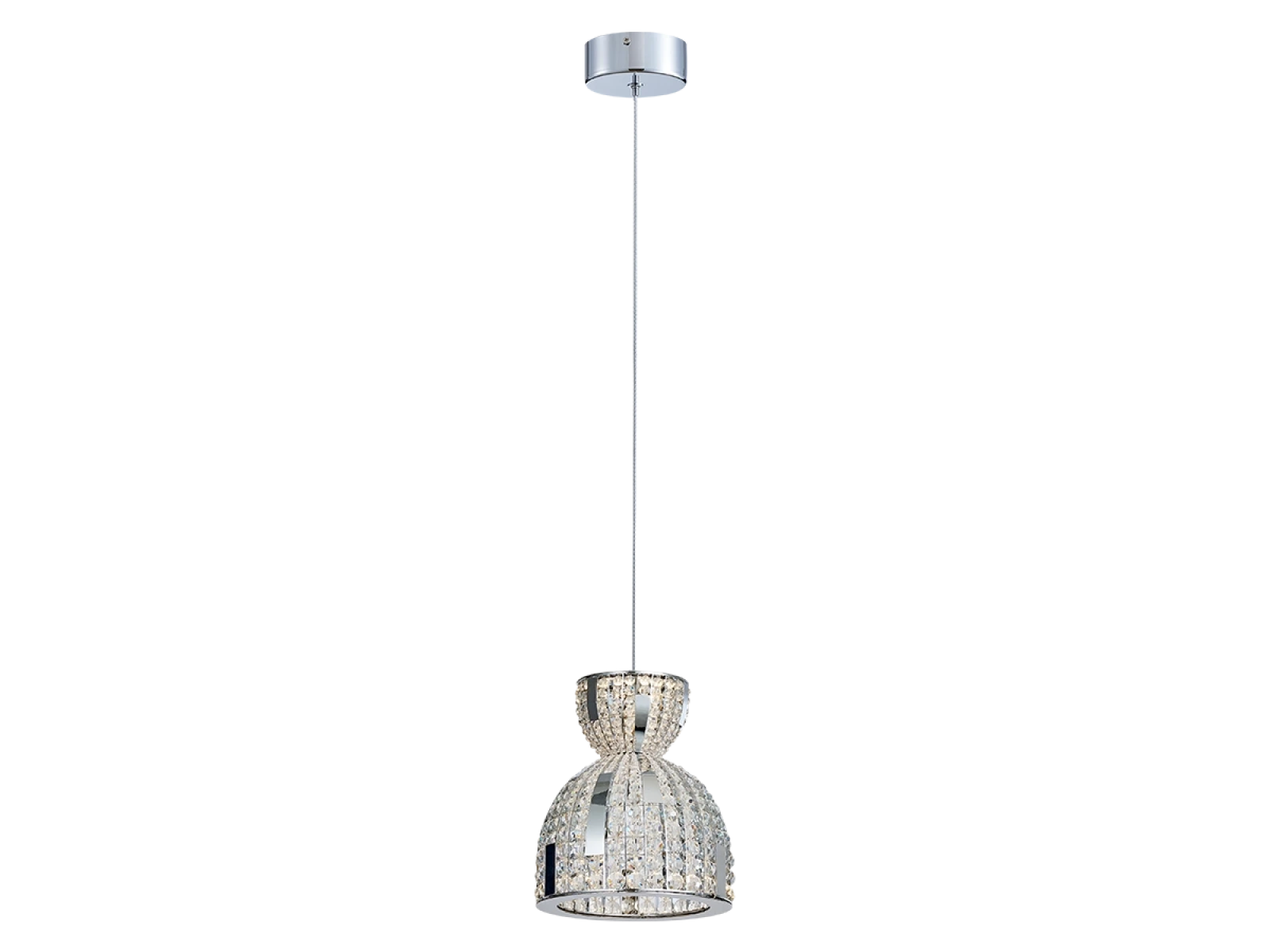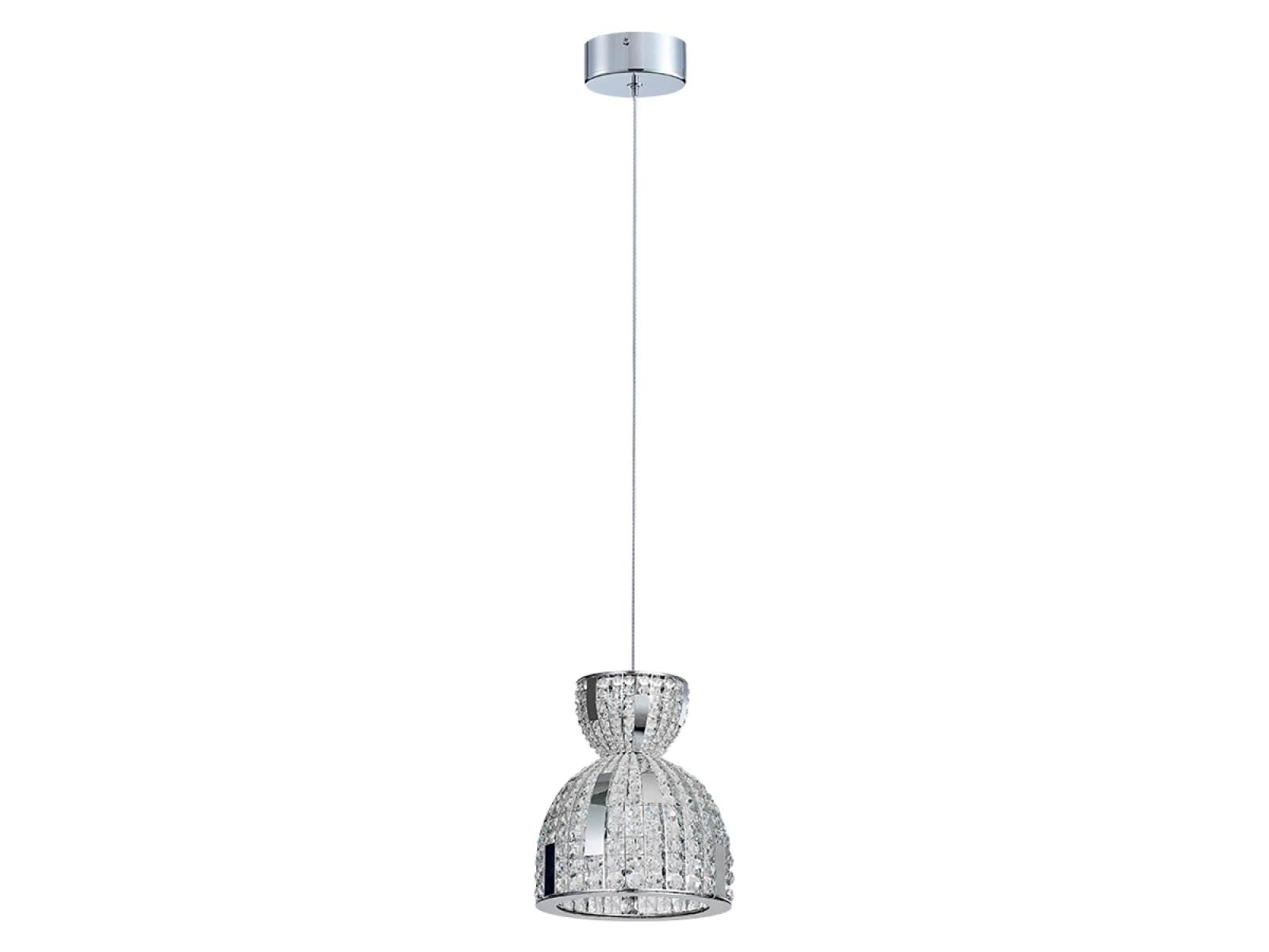 LED závesné svietidlo značky VIZARDI zo série KATRIA zaujme elegantným tvarom a luxusným dizajnom s bohatými kryštálovými detailmi, ktoré vytvárajú pôsobivé svetelné efekty. Jemne tvarované tienidlo v kombinácii s lesklým chrómovým prevedením dodáva svietidlu nadčasový a reprezentatívny vzhľad.