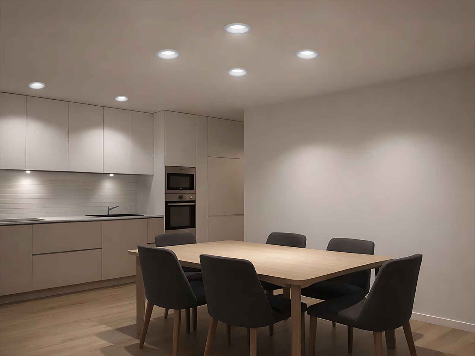Kompaktné a úsporné LED podhľadové svietidlo je ideálne na osvetlenie interiérových priestorov, ako sú chodby, kúpeľne, kuchyne či komerčné priestory. Vďaka krytiu IP44 je vhodné aj do vlhkého prostredia.